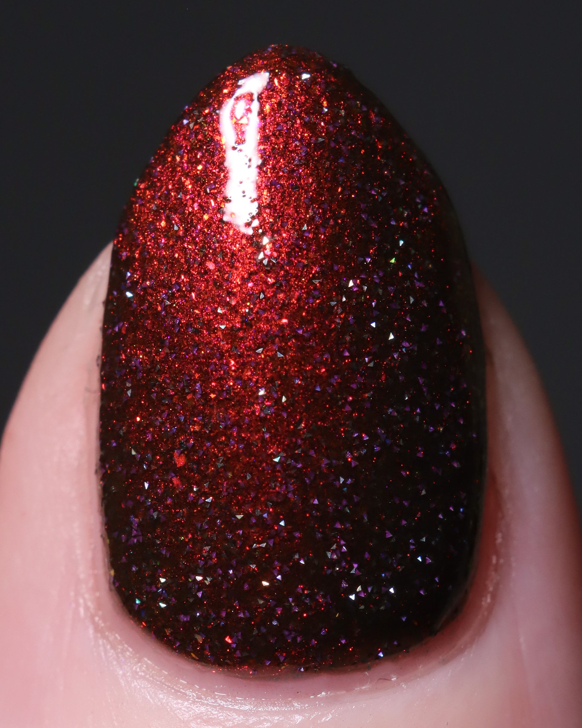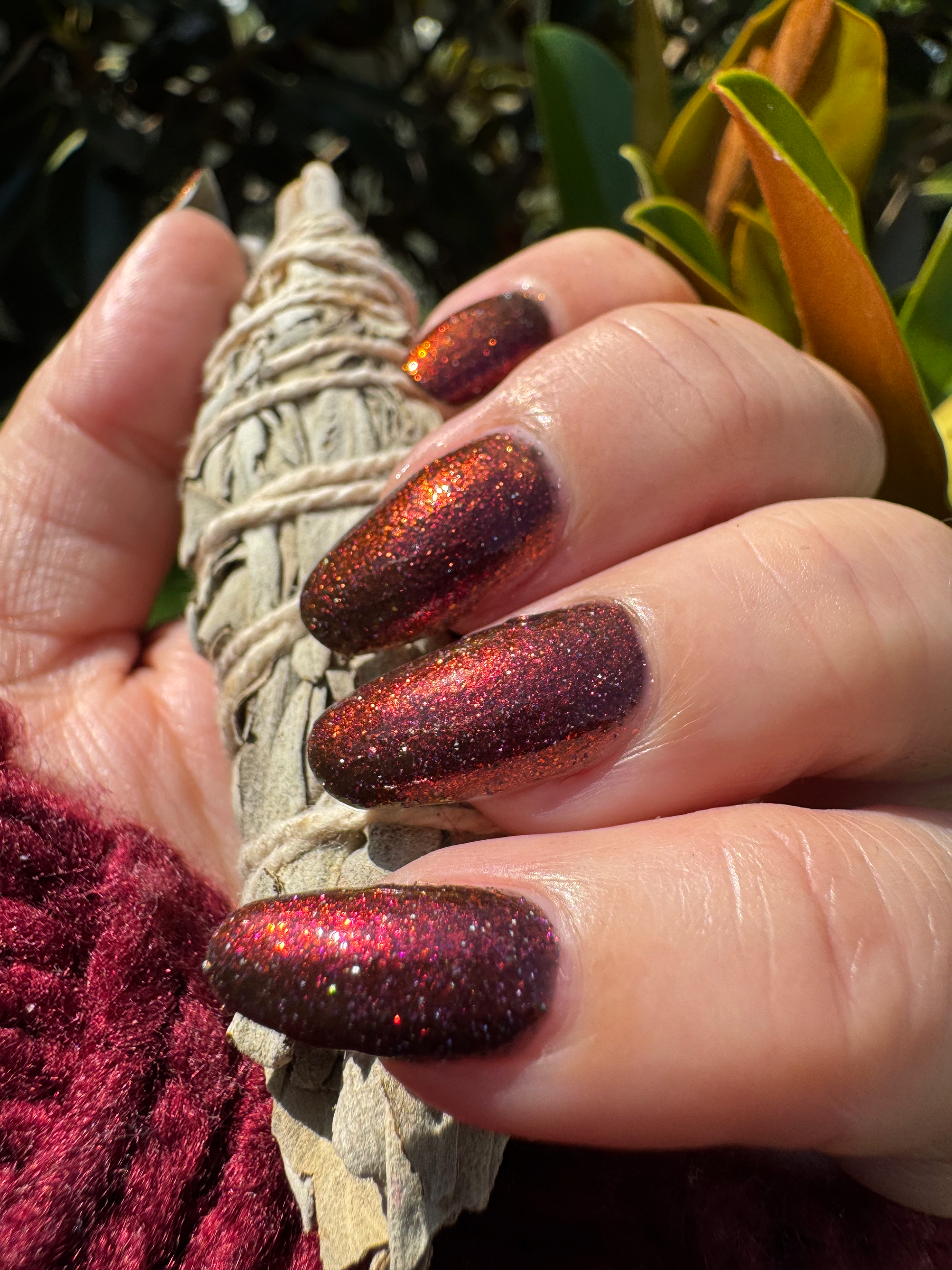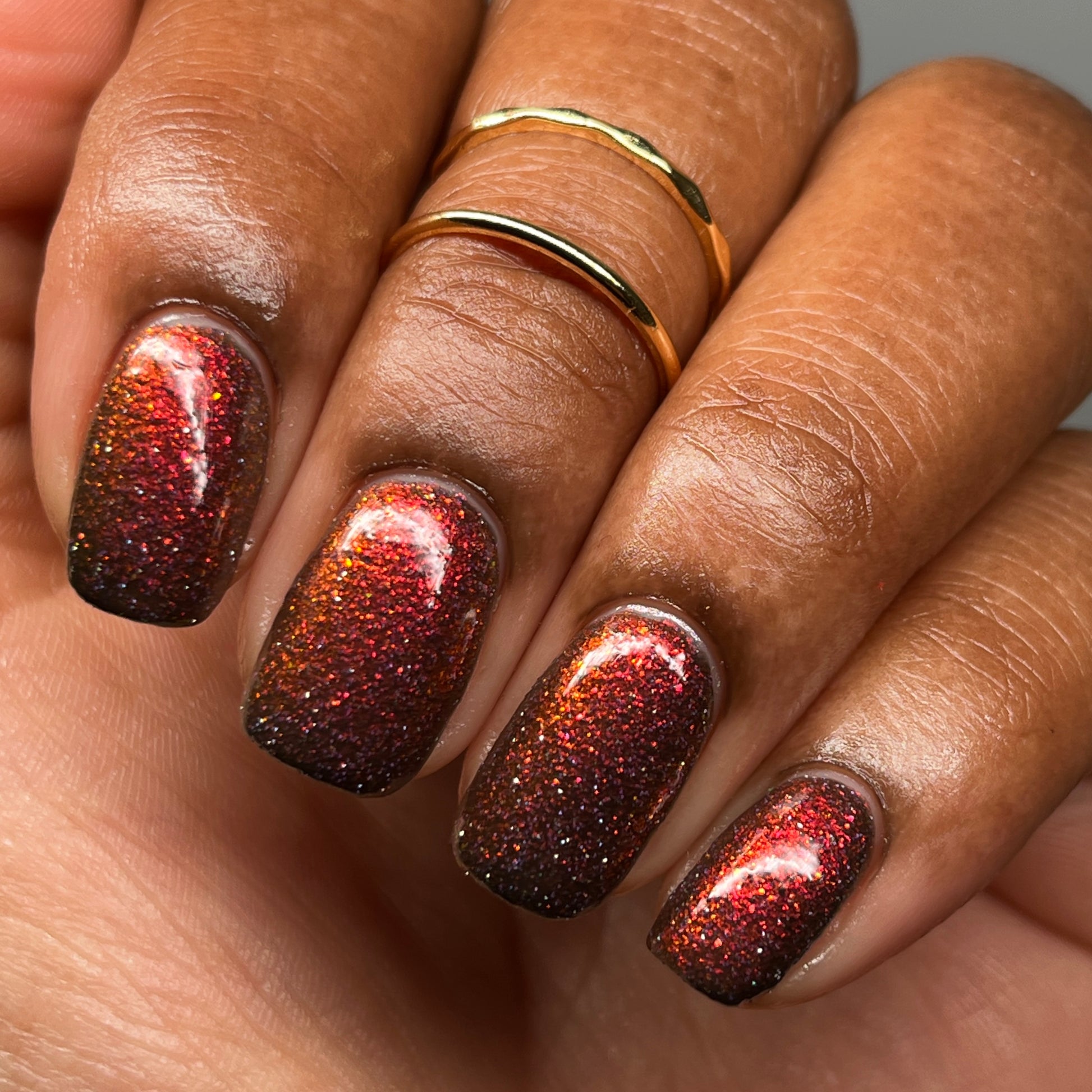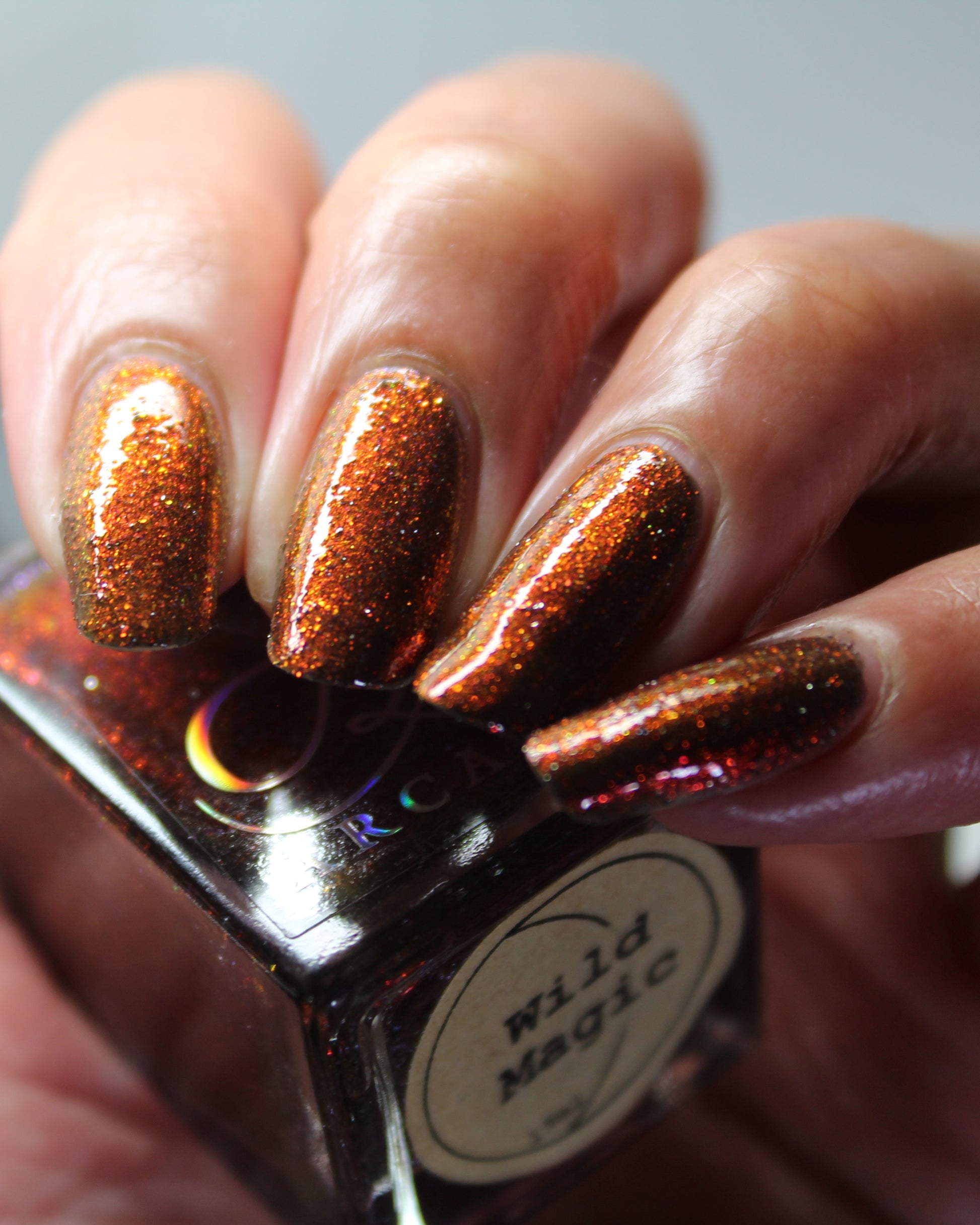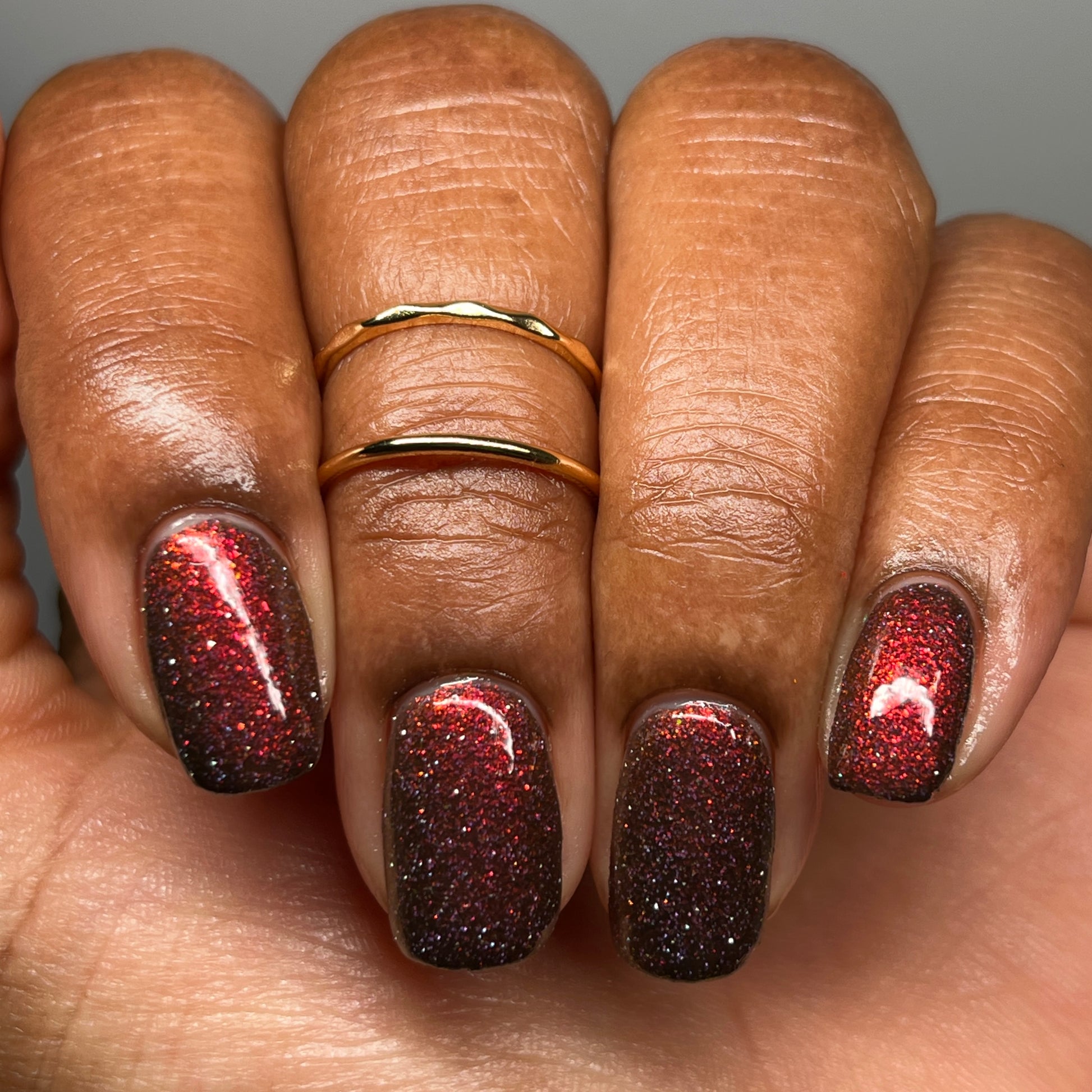 Wild Magic has a black base with red to yellow shimmer in various sizes and loaded with silver reflective glitter!