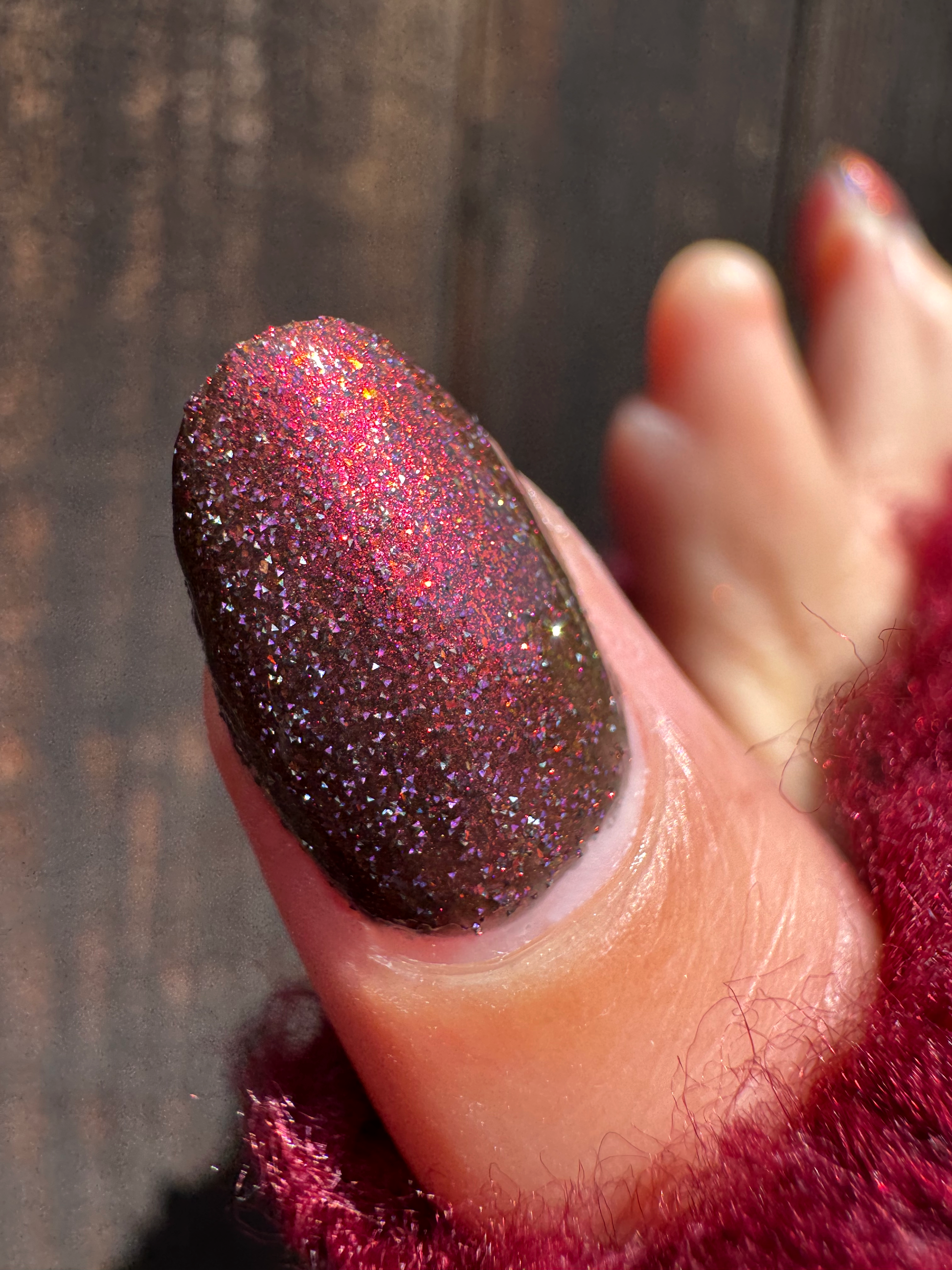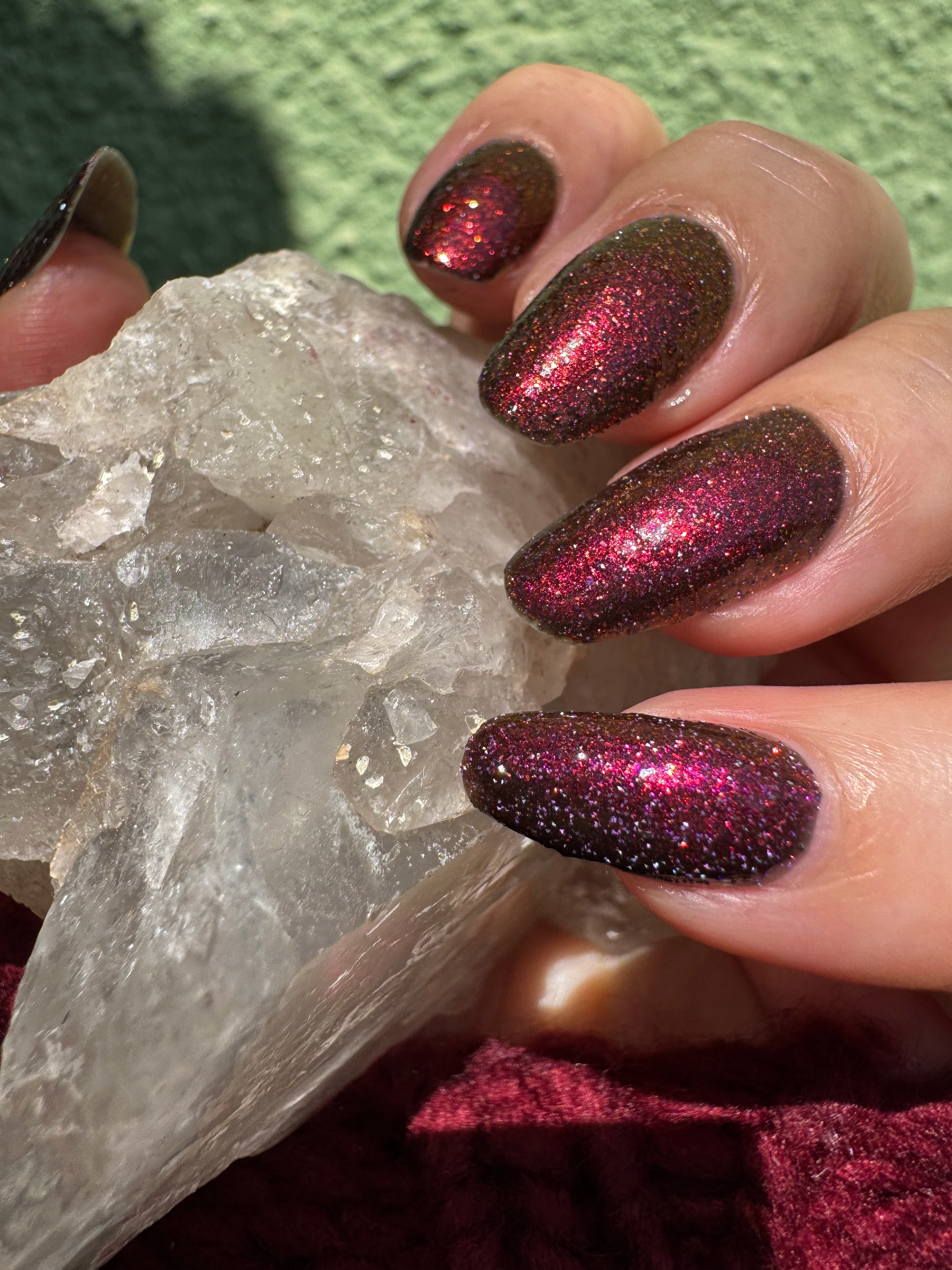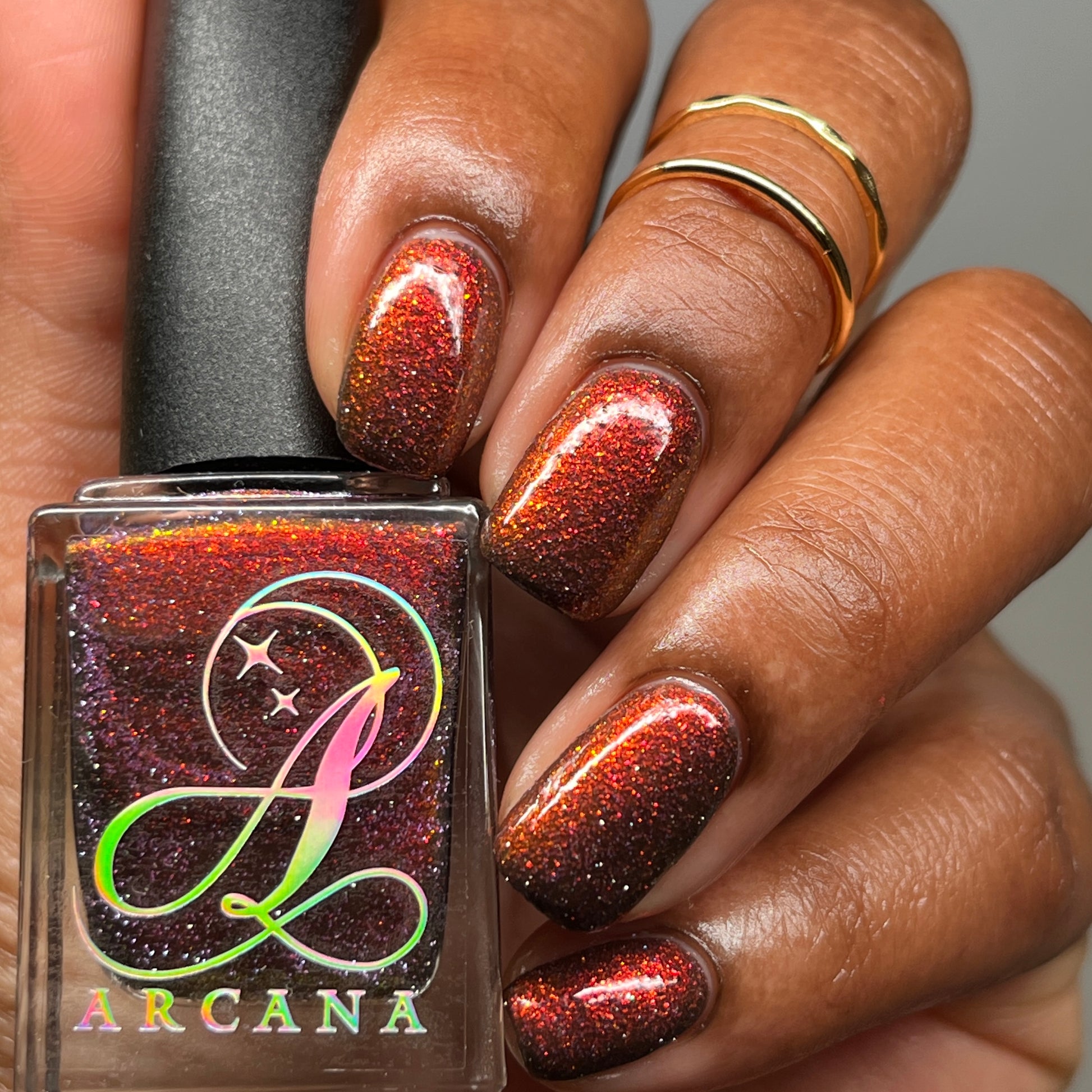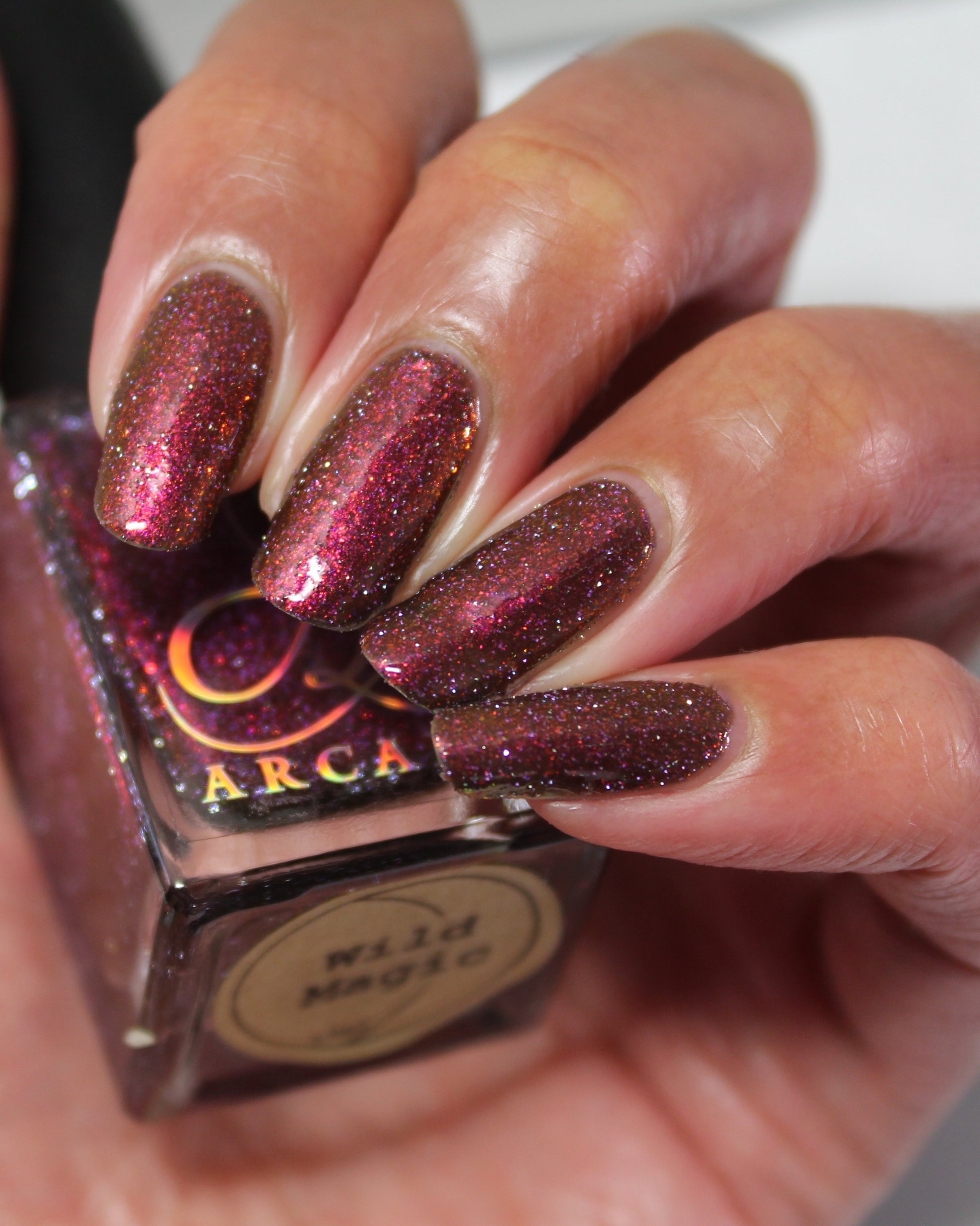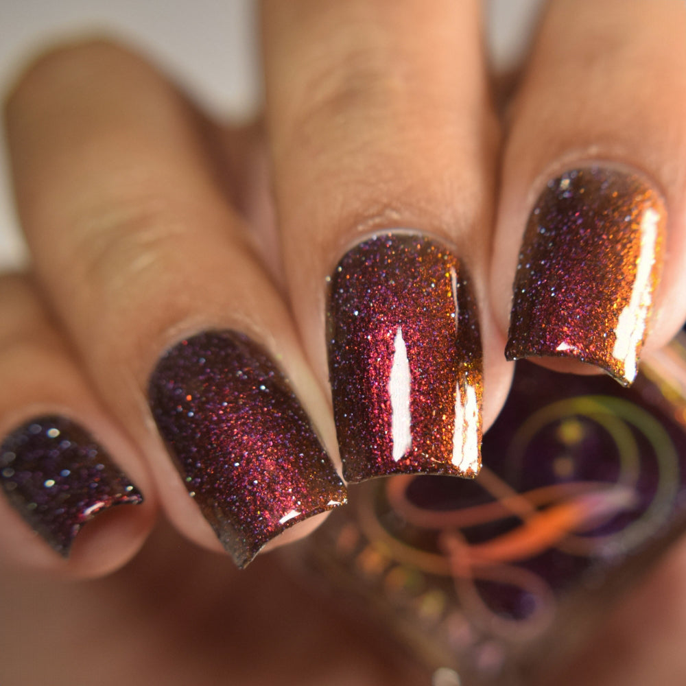 Wild Magic has a black base with red to yellow shimmer in various sizes and loaded with silver reflective glitter!