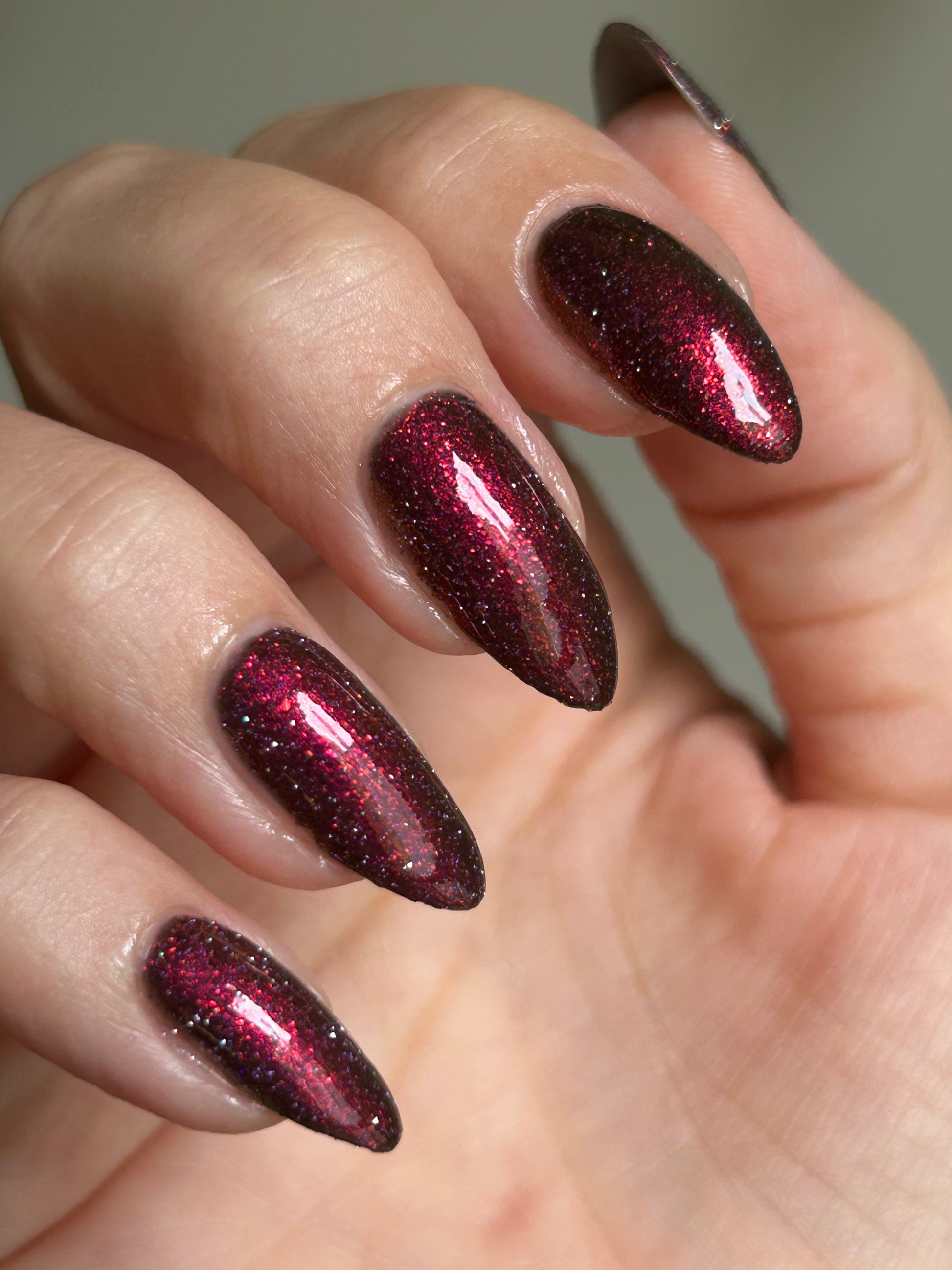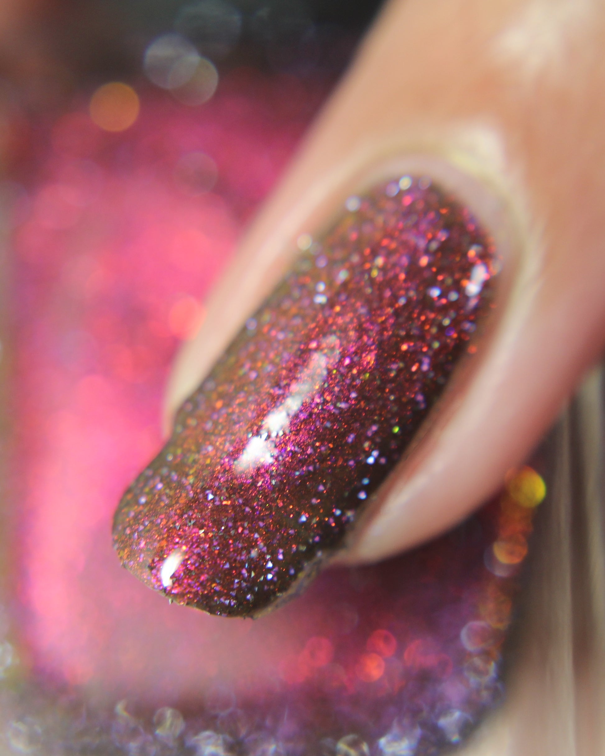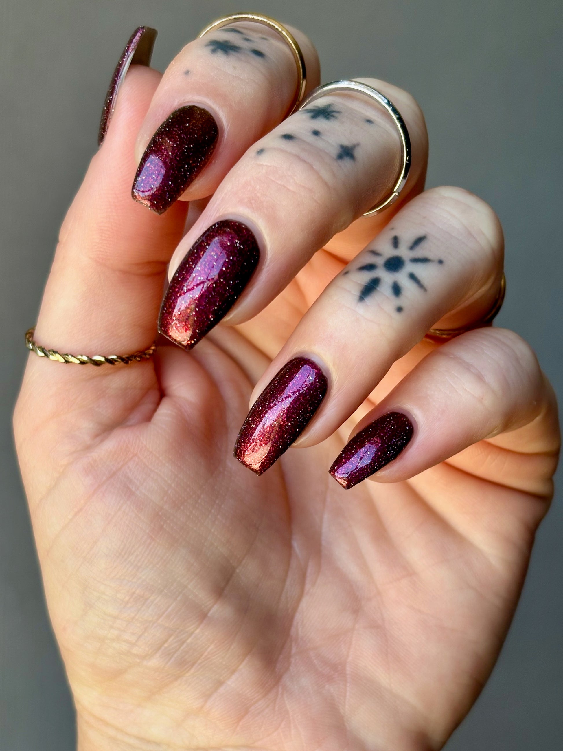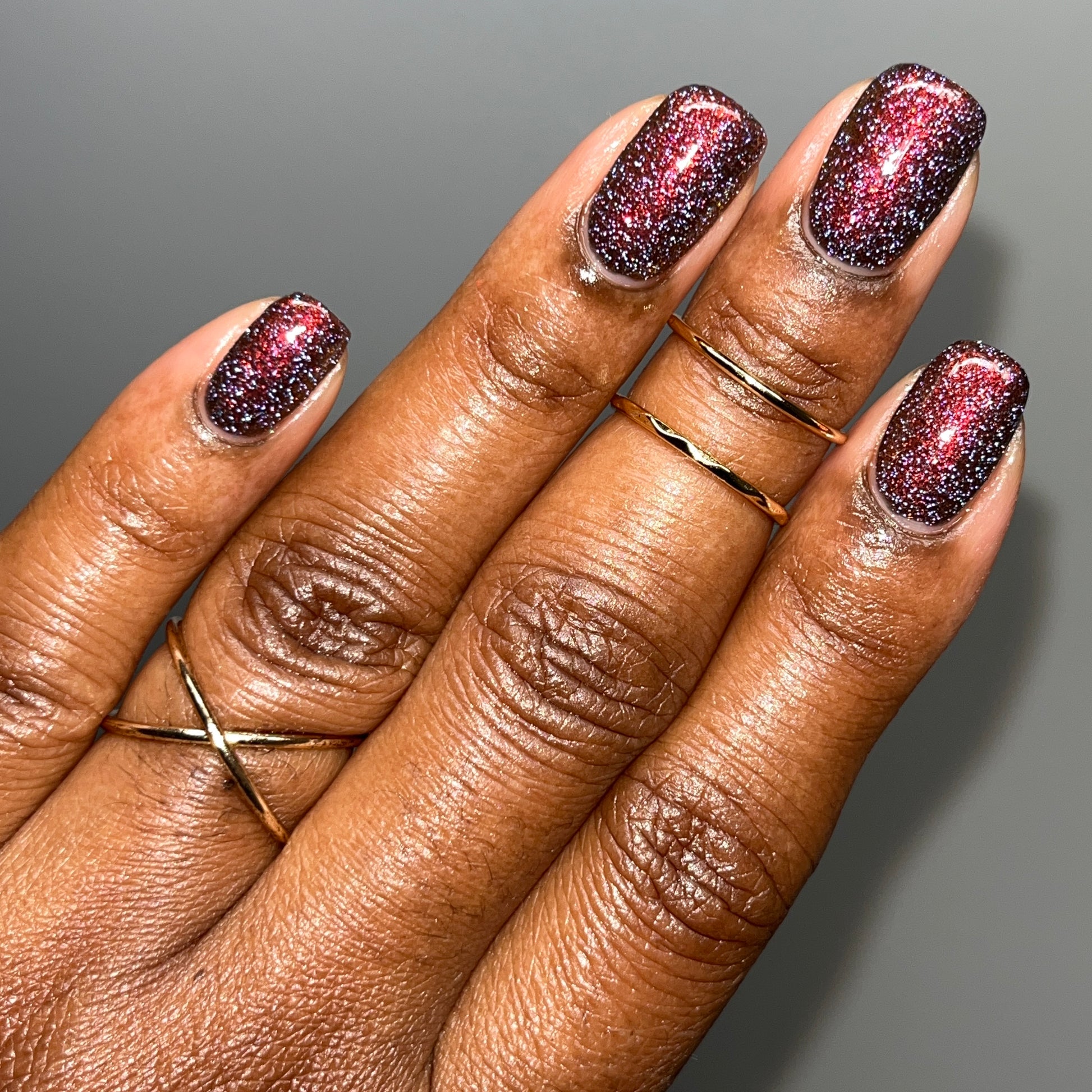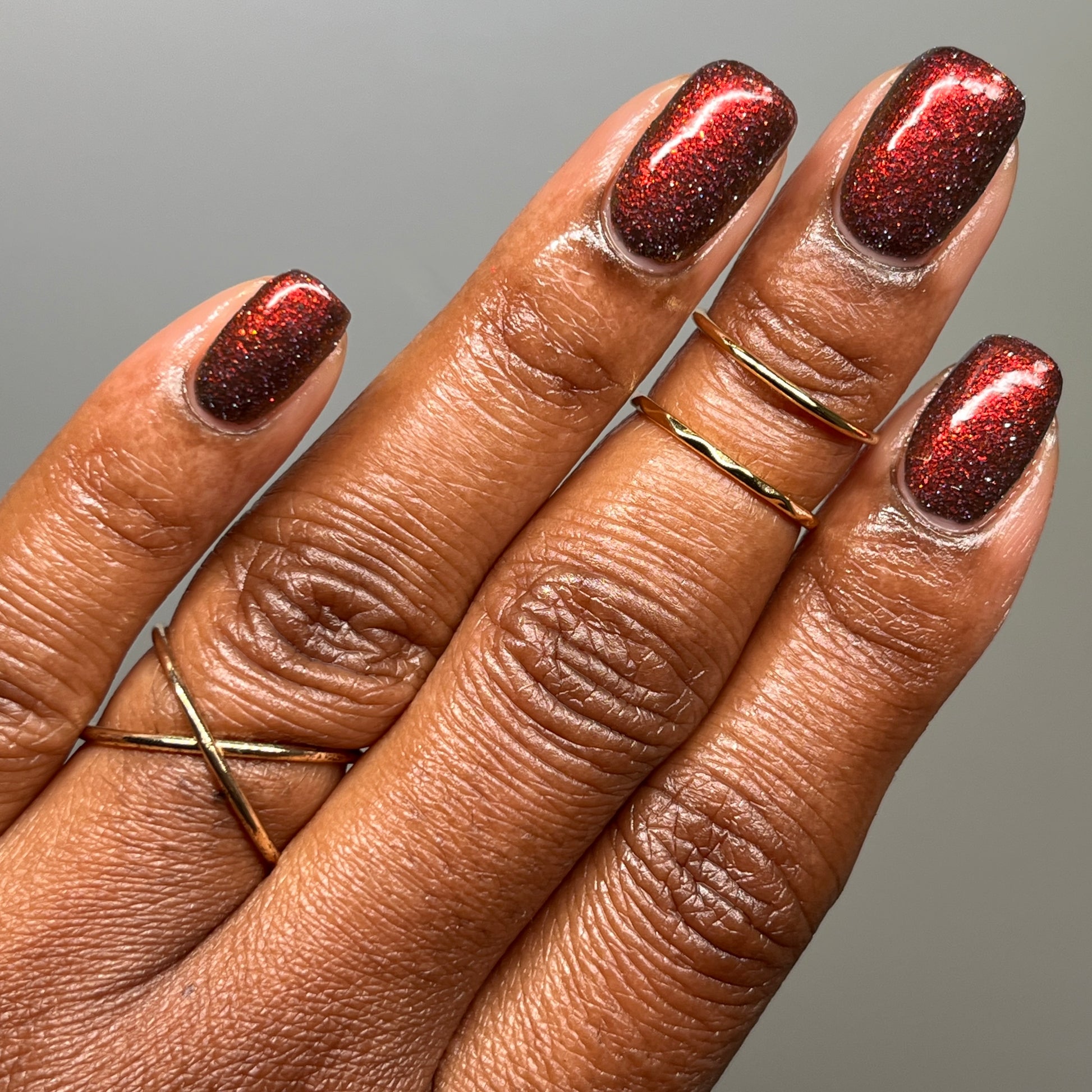 Wild Magic has a black base with red to yellow shimmer in various sizes and loaded with silver reflective glitter!