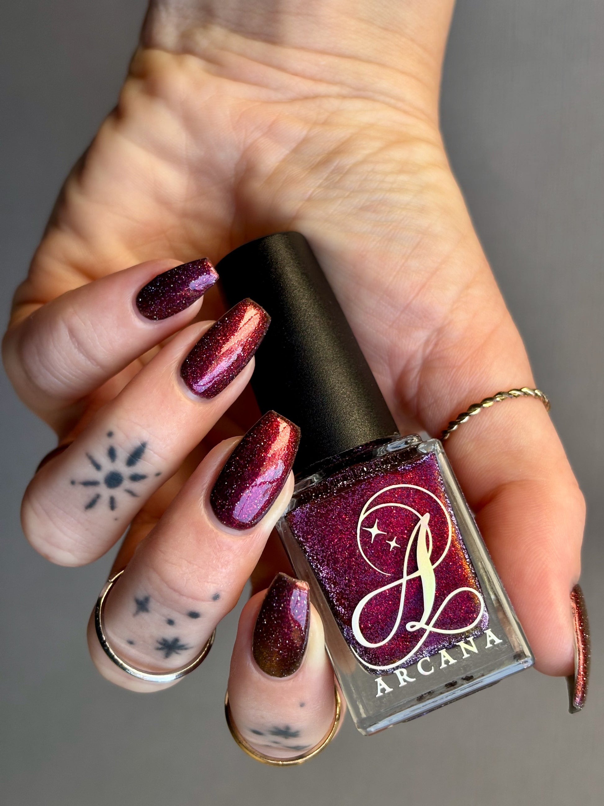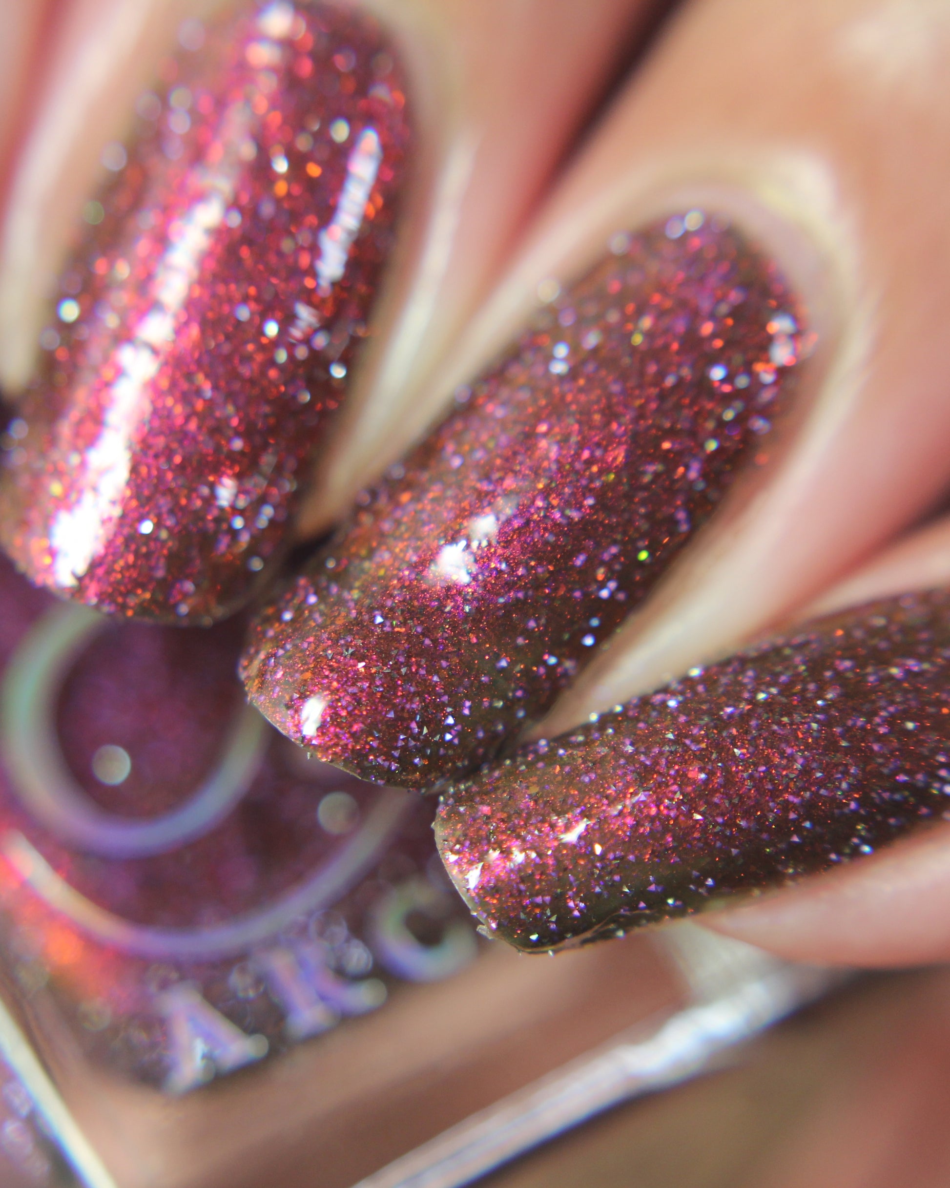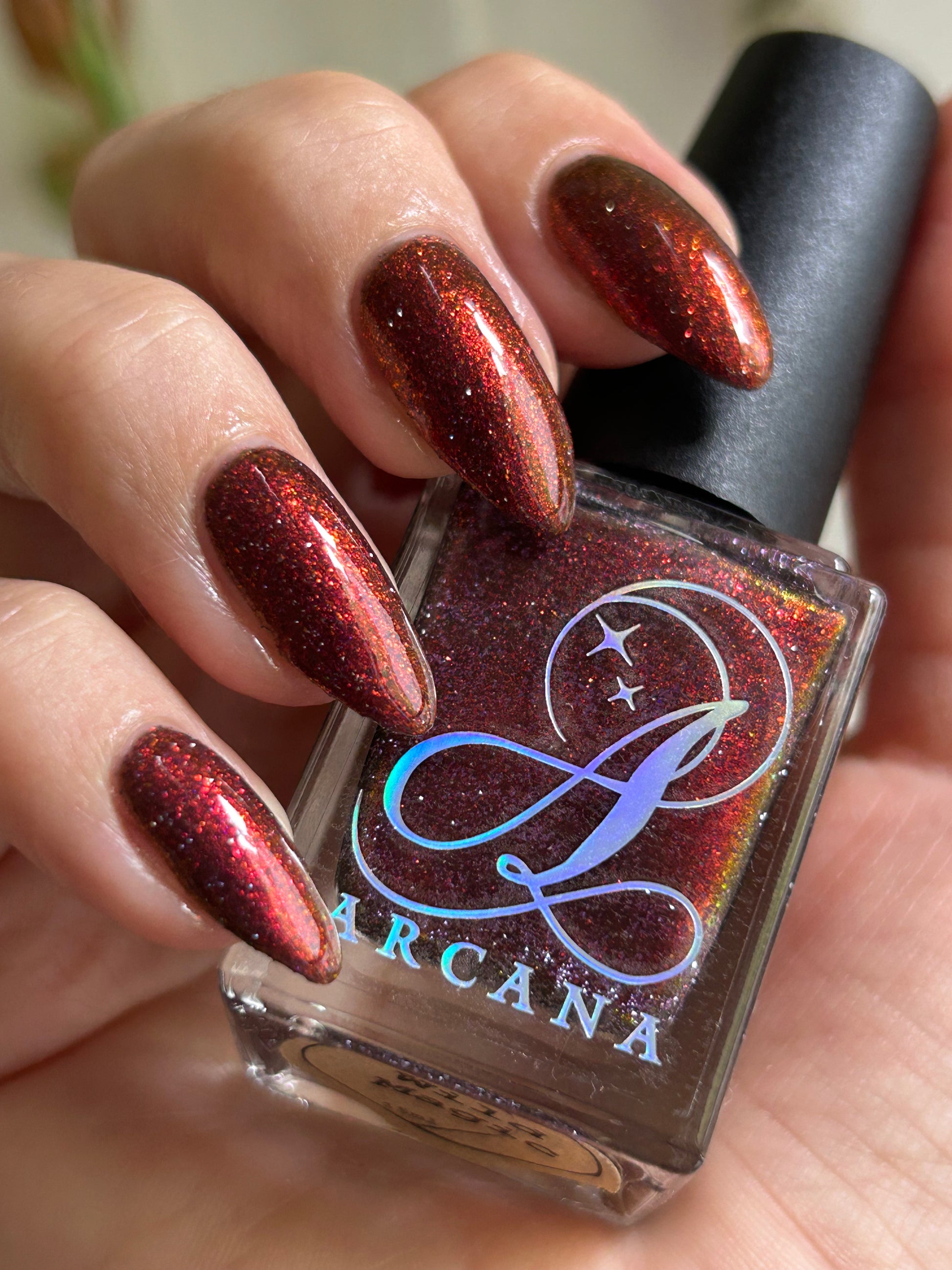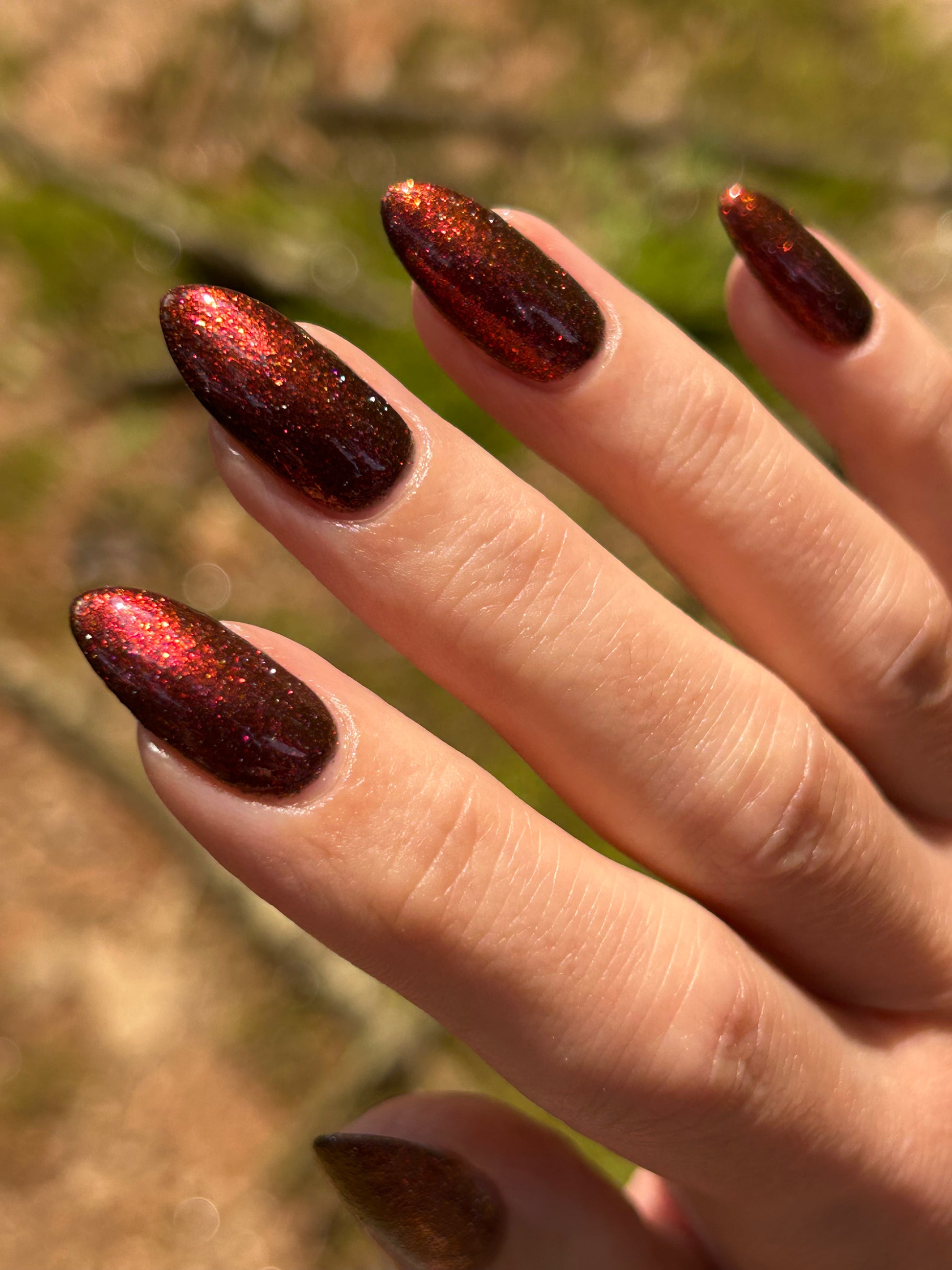 Wild Magic has a black base with red to yellow shimmer in various sizes and loaded with silver reflective glitter!