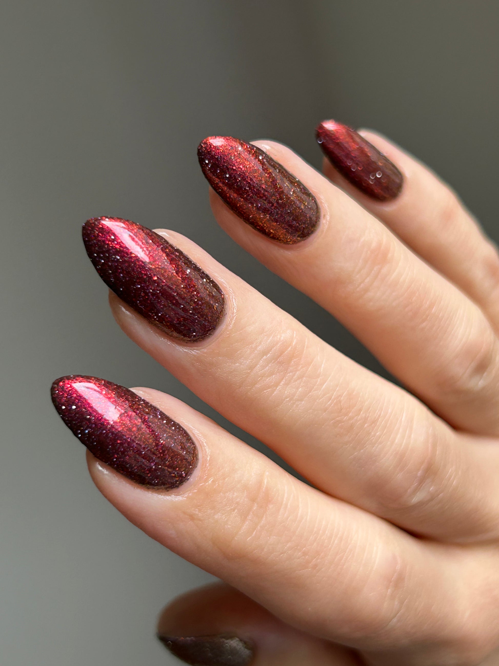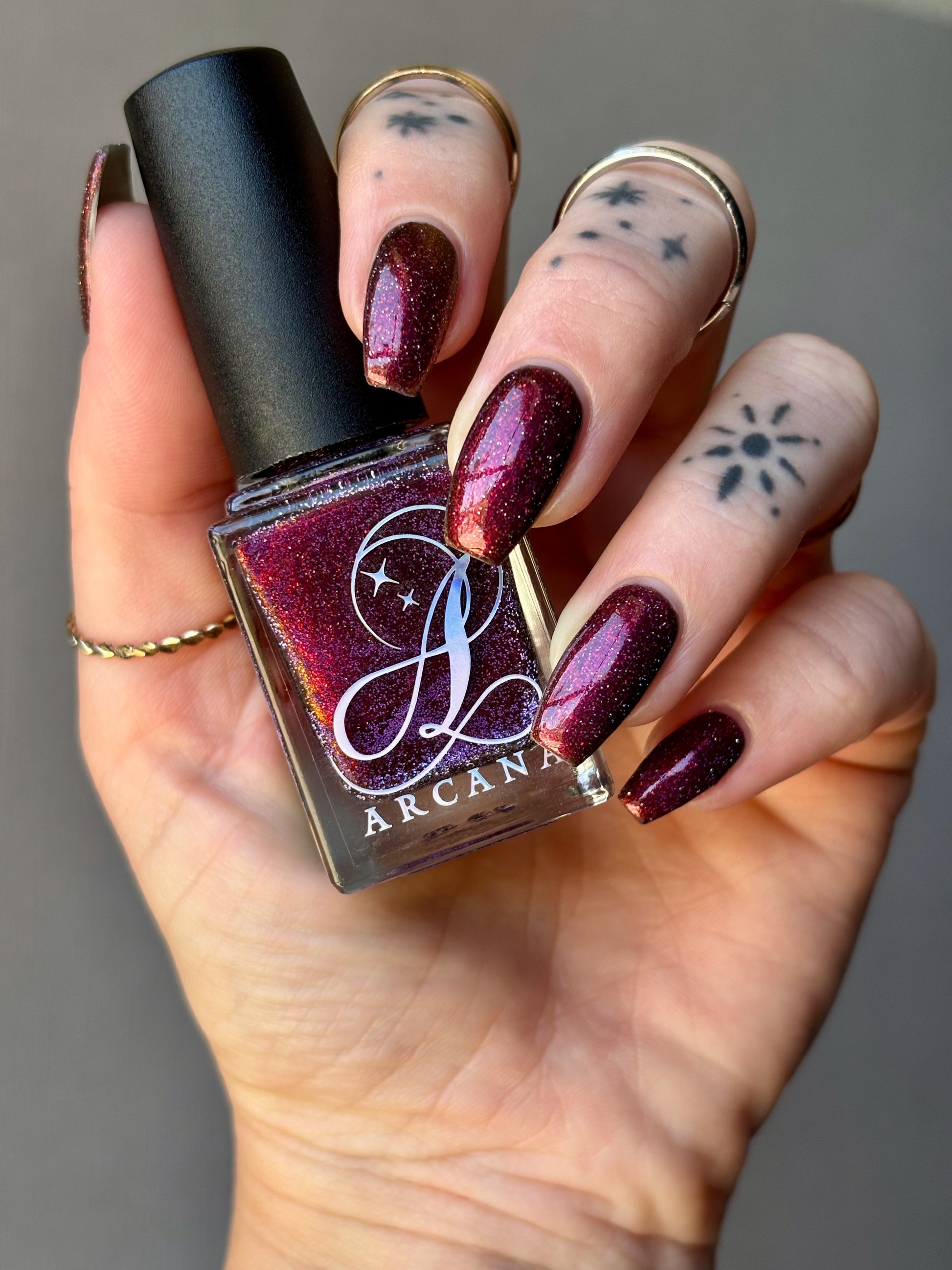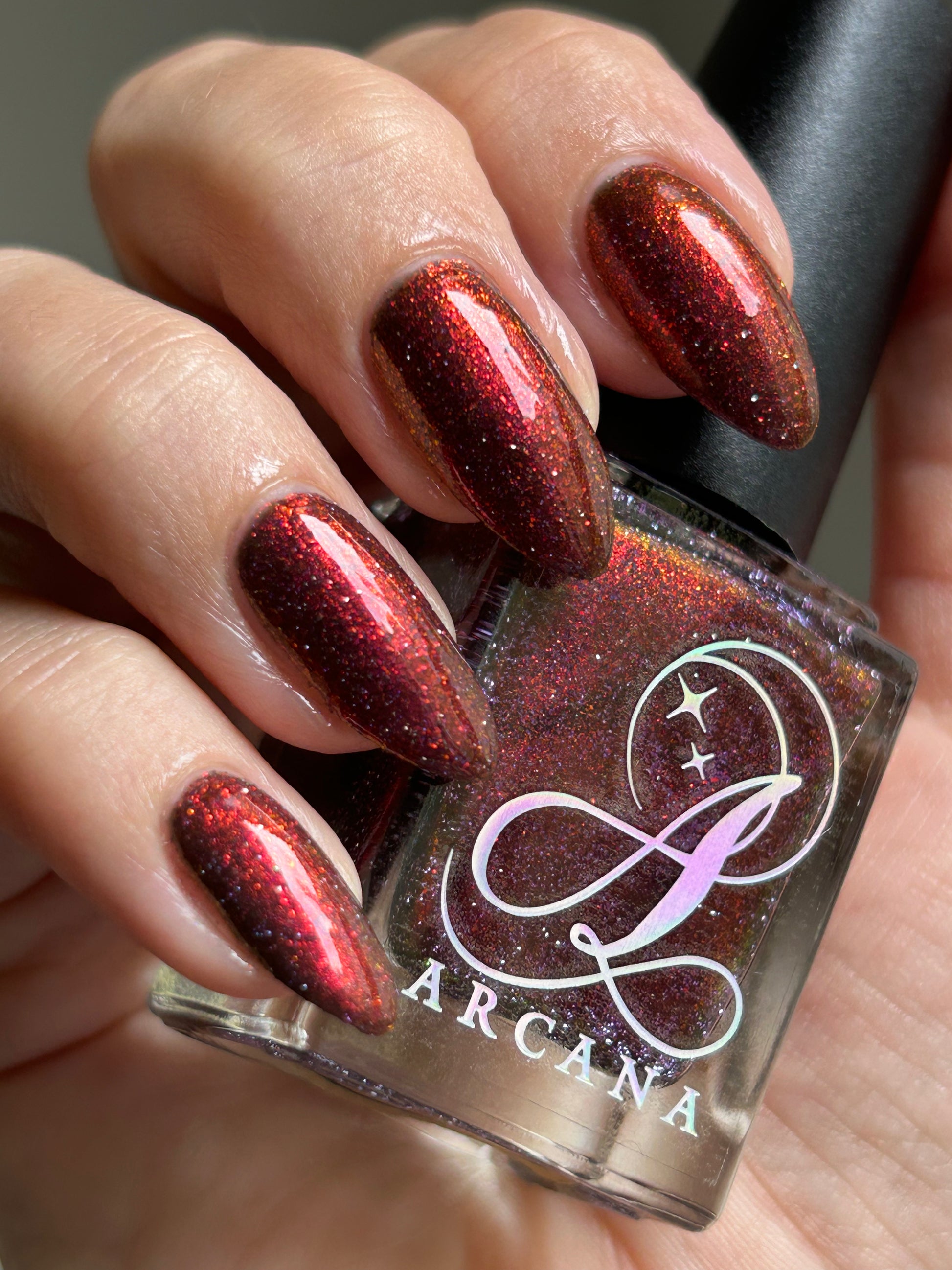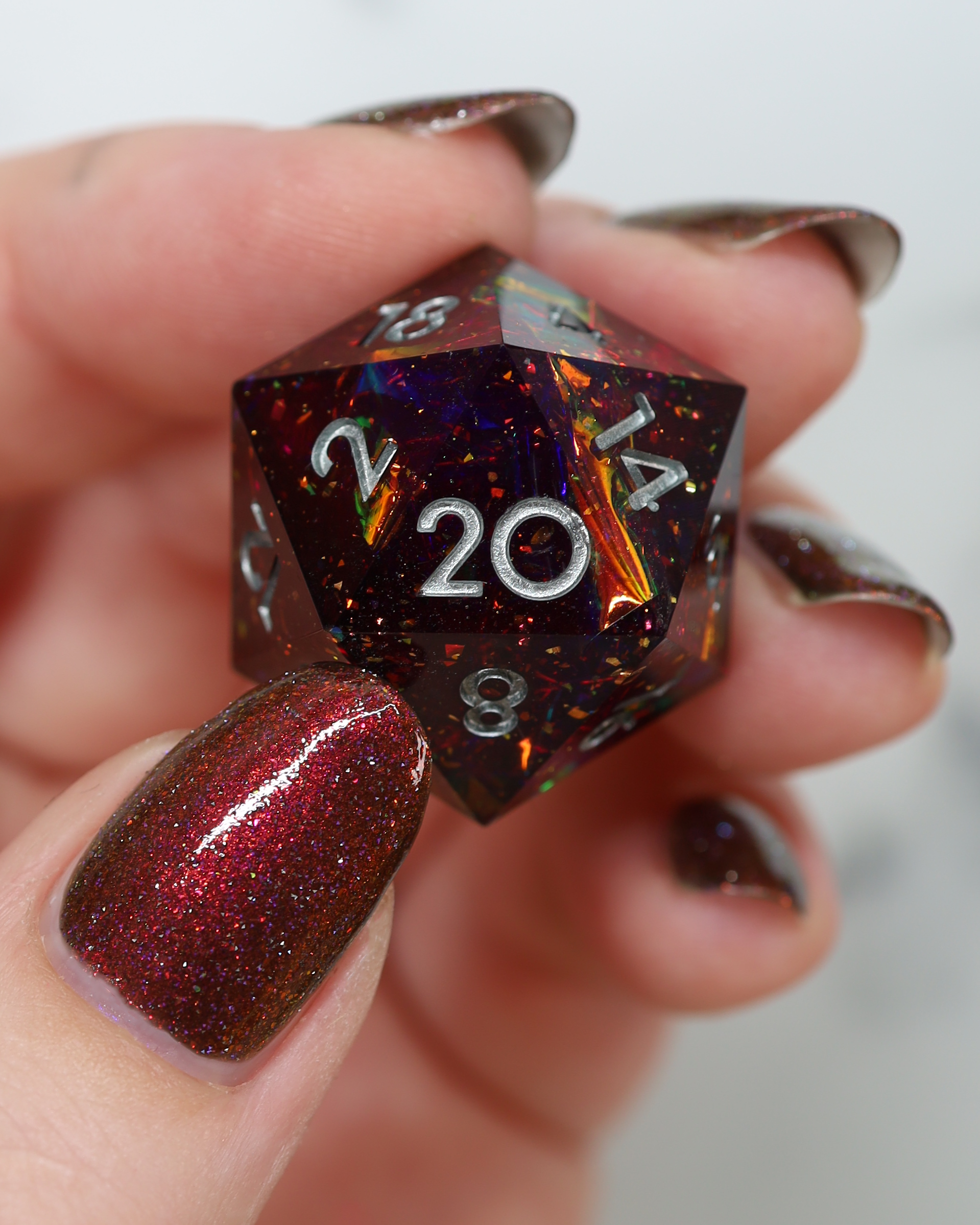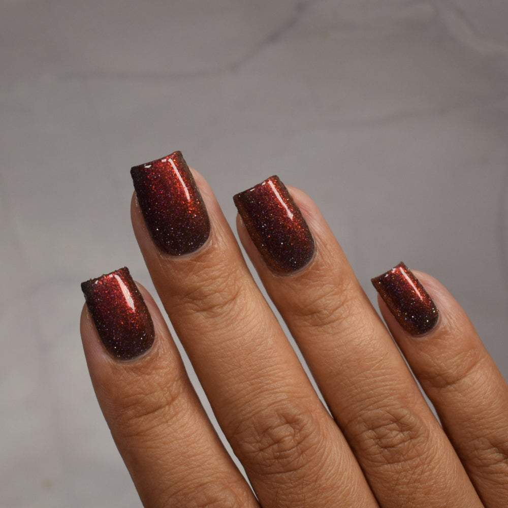 Wild Magic has a black base with red to yellow shimmer in various sizes and loaded with silver reflective glitter!