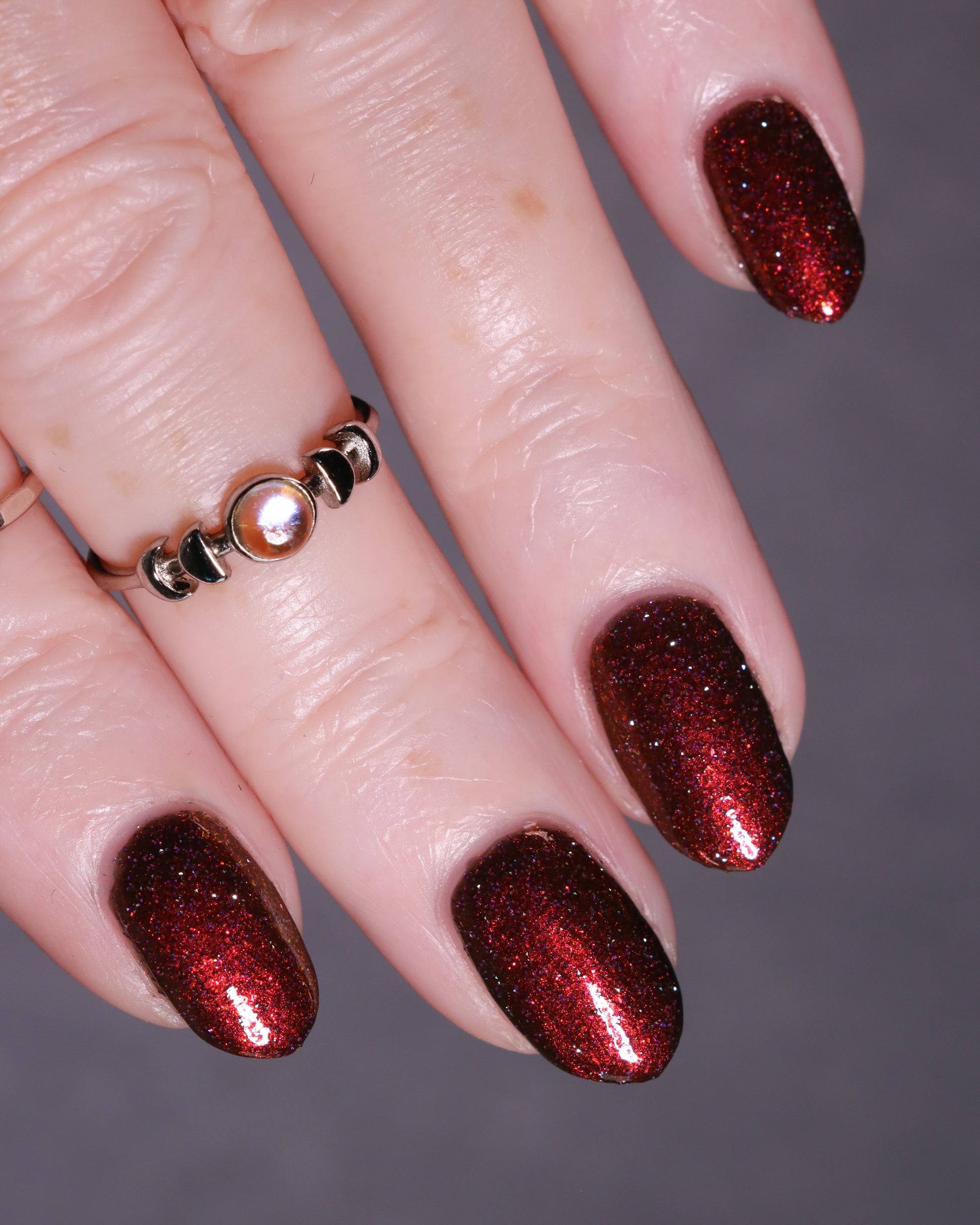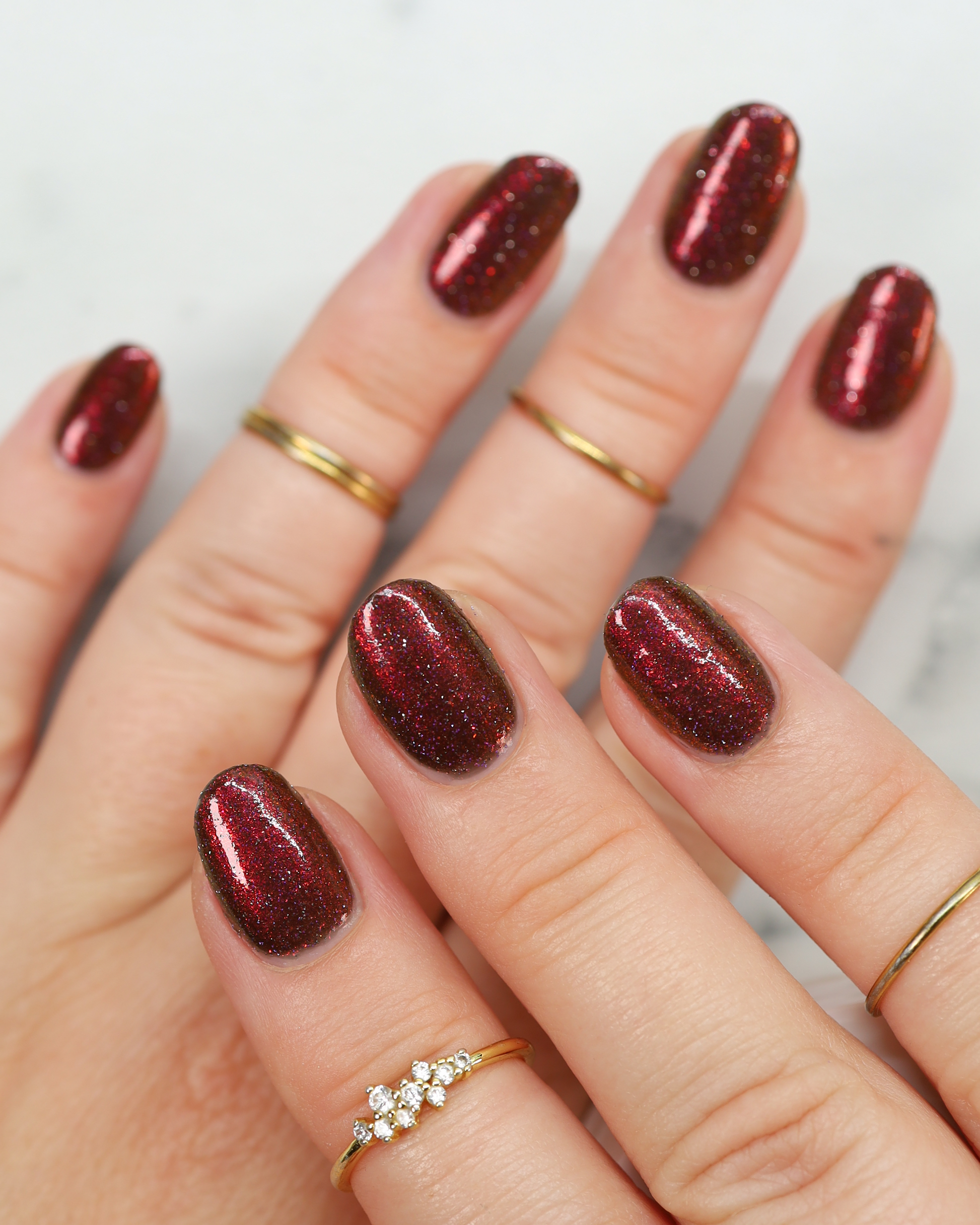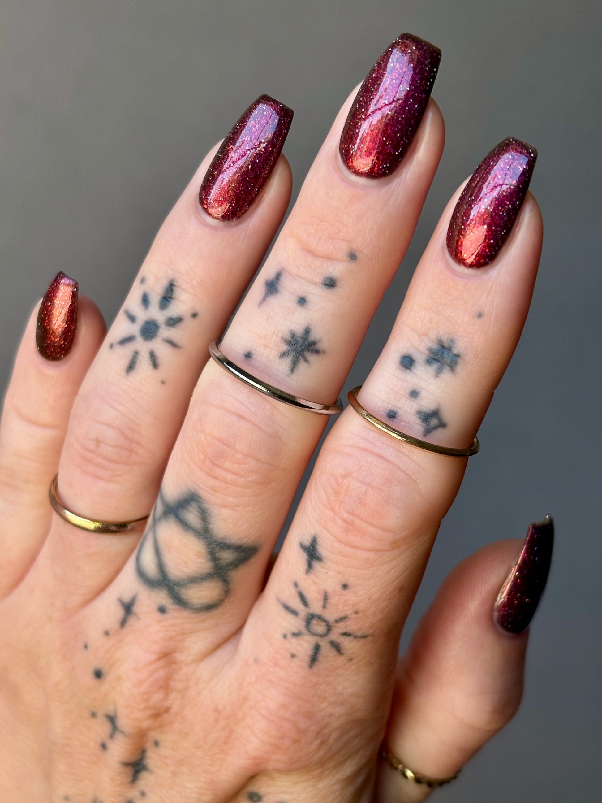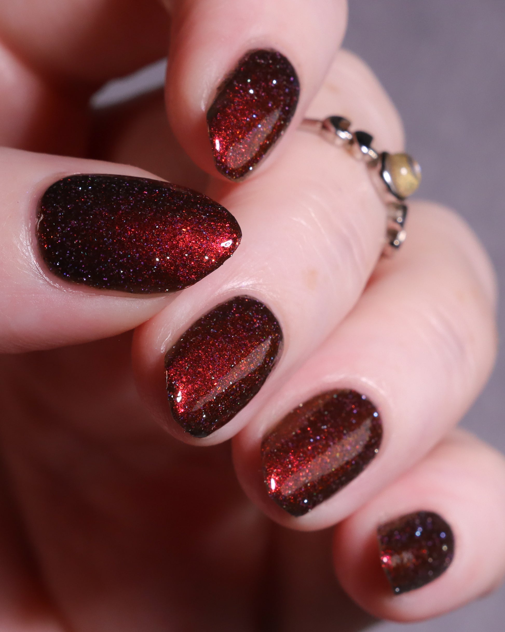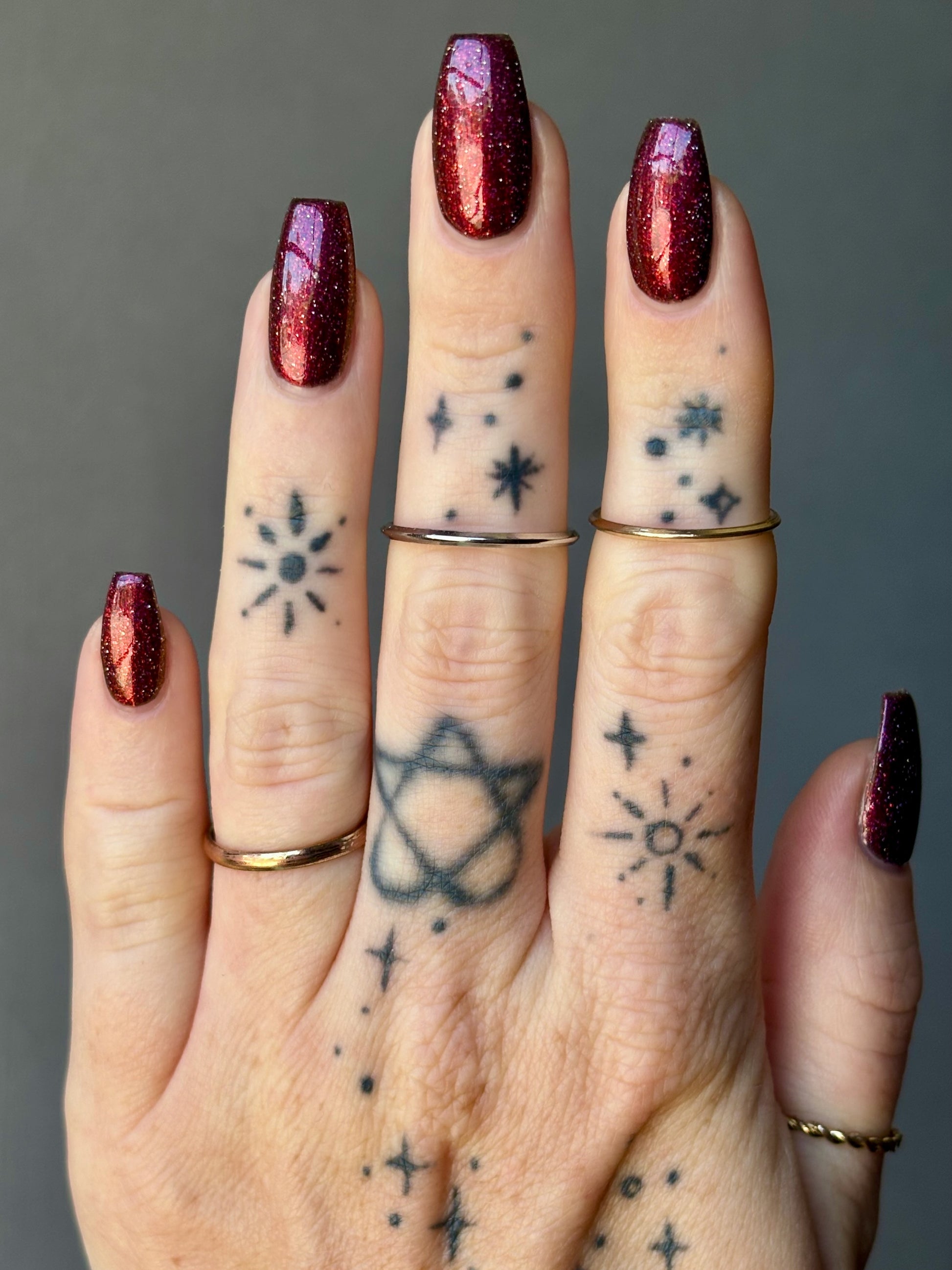 Wild Magic has a black base with red to yellow shimmer in various sizes and loaded with silver reflective glitter!